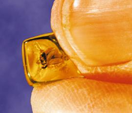 This midge lost its eggs as it died, sinking into its golden tomb. The eggs look like small corn cobs.